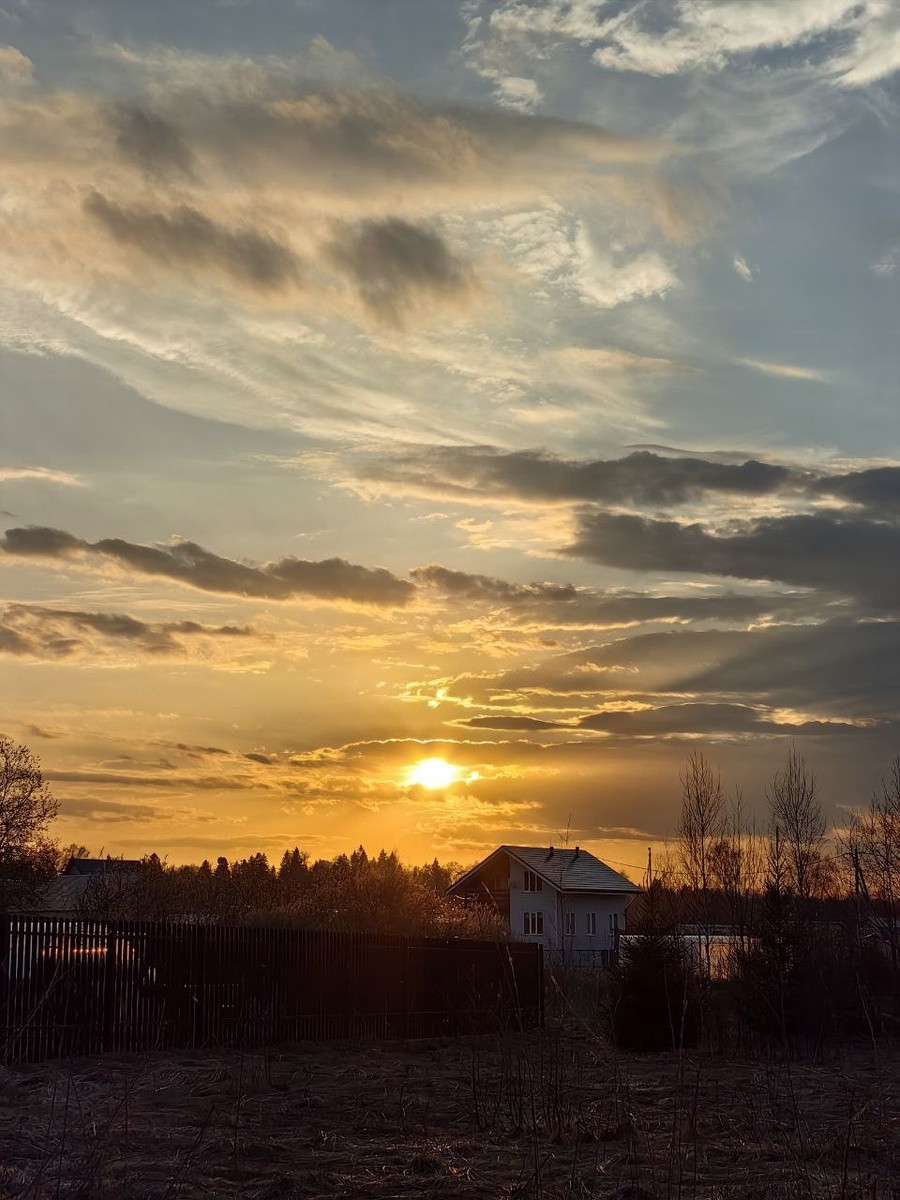 Ярко-желтый закат за облаками (Комарово, Клинский район) #sky #blue #sunset #sun #bright #yellow #white #grey #clouds #rural #landscape #spring #April #Komarovo #Klin #небо #голубое #закат #солнце #яркое #желтое #белые #серые #облака #сельский #пейзаж #весна #апрель #Комарово #Клин