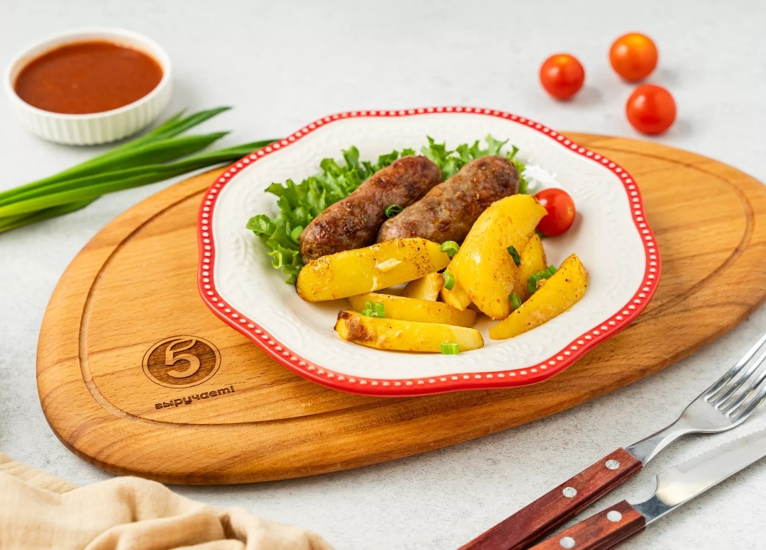 Грузинские купаты обычно жарят на мангале, гриле или сковороде. Но не менее вкусными они получатся и в духовке. Запекаясь в рукаве, колбаски не потеряют соки и аромат, хорошо пропарятся и размягчатся. К купатам можно сразу положить очищенный и нарезанный картофель, чтобы не беспокоиться о гарнире. Особый вкус блюду придаст заправка с томатным соусом, сметаной, чесноком и приправами. Если хотите получить на картофеле и купатах аппетитную румяную корочку, то в конце приготовления разрежьте рукав.