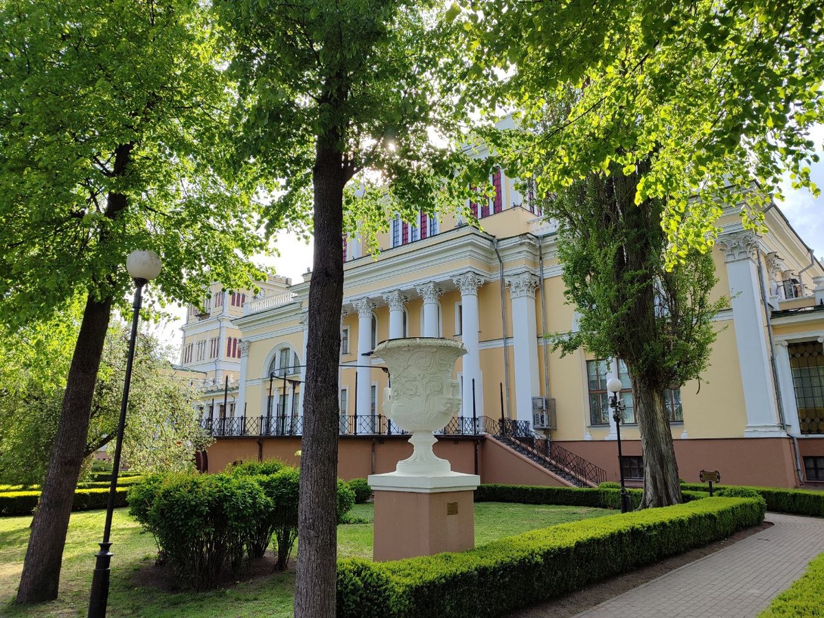 Облик места, по которому мы гуляем, формировался в течение почти двухсот лет. Начало этому в 1777 году положило строительство дворца в стиле классицизма по проекту петербургского архитектора И.Е. Старова. Первоначально это была просто загородная резиденция, предназначенная для кратковременных визитов П.А. Румянцева. Гомель в 1775 году был подарен Петру Румянцеву-Задунайскому Екатериной II, и он занялся его обустройством, практически обнулив всю его предыдущую историю. Так и появился дворец на территории замка времён Речи Посполитой.