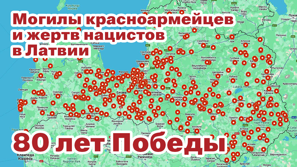 Несмотря на попытки властей Латвии стереть память о Великой Отечественной войне в Латвии, тысячи латвийцев продолжают беречь память о героях Красной Армии, победивших вместе с союзниками в 1945 году силы тьмы и их пособников. Некоторые латвийцы уже сегодня, а многие завтра, 9 мая, посетят воинские братские и одиночные могилы, находящиеся в самых разных уголках Латвийской Республики. Вандалы в законе снесли многие памятники вне захоронений, но всё равно на латвийской земле до сих пор есть свыше 360 мемориалов, где покоятся погибшие в боях против нацистов воины Красной Армии, Красного Флота, войск НКВД, милиции, разведывательно-диверсионных групп, партизанских отрядов и подпольных организаций. Хотя на данный момент это самый актуальный список, уточнения и дополнения приветствуются.