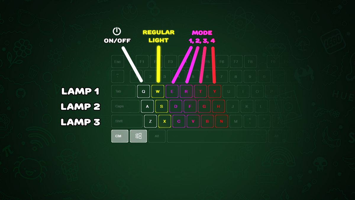Недавно настроил себе управление лампами через горячие клавиши и это оказалось очень удобным. Хочу поделиться методом, потому что это экономит деньги и пространство в комнате - не нужно покупать умные колонки и пульты (по крайней мере для комнаты с компьютером). А на настройку уйдет 10-25 минут. Я уже настроил себе включение клавиатурой кухонного чайника, розетки и всех имеющихся ламп. Можно придумать много разных автоматизаций для рутинных домашних дел и по-моему это офигенно. Чтобы лучше запомнить кнопки, расположим их в ряд для каждой лампы: В мобильном приложении Xiaomi Home создаем аккаунт с паролем (важно) и подключаем к нему лампу. Открываем командную строку на ПК и вводим: bashКопироватьРедактироватьpip install python-miio Устанавливаем Python-модуль для управления устройствами на протоколе miio Затем: bashКопироватьРедактироватьmiiocli cloud После ввода этой команды появится поле username — вводим вашу почту от Xiaomi Home. Затем в password — ваш пароль.