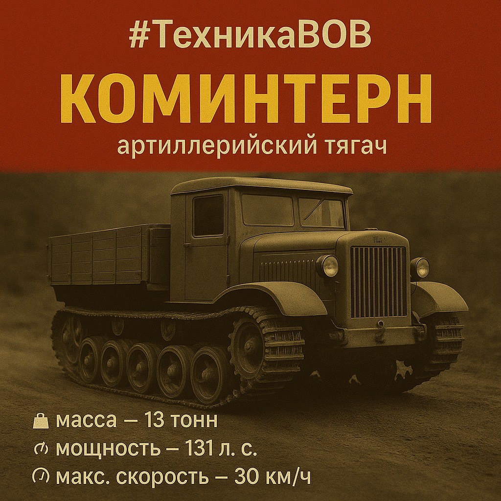 #ИсторияСДороги 🛠 На очереди — "Коминтерн", гусеничный тягач, который тянул за собой пол-армии. Разработан в 1930-х на базе танка Т-24. Предназначен для буксировки тяжёлой артиллерии — гаубиц, пушек, зениток. Имел гусеничный ход, что позволяло тянуть тяжёлые грузы по грязи, снегу, бездорожью. 📍 Масса — 13 тонн 📍 Двигатель — 131 л.с., бензиновый 📍 Скорость — до 30 км/ч 📍 Тянул до 15 тонн прицепа Экипаж — 2 человека, но внутри могли разместиться ещё до 10 бойцов или расчёт орудия. Часто использовался как тягач для "Катюш", понтонных мостов, а также как эвакуатор для повреждённой техники. Корпус бронированный частично, кабина закрытая — защищала от осколков. Коминтерн надёжен, проходим и вынослив, как трактор, только в военной шинели. 💡 Символ советской инженерии начала войны. #ЗапчастиЯкутск #ЗапчастиДляГрузовиков #Коминтерн #ТягачВОВ #ИсторияСДороги