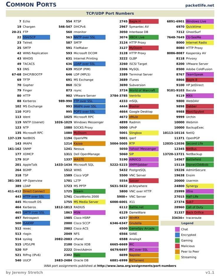 🌐Список наиболее распространённых портов TCP и UDP. #network @samsitblog