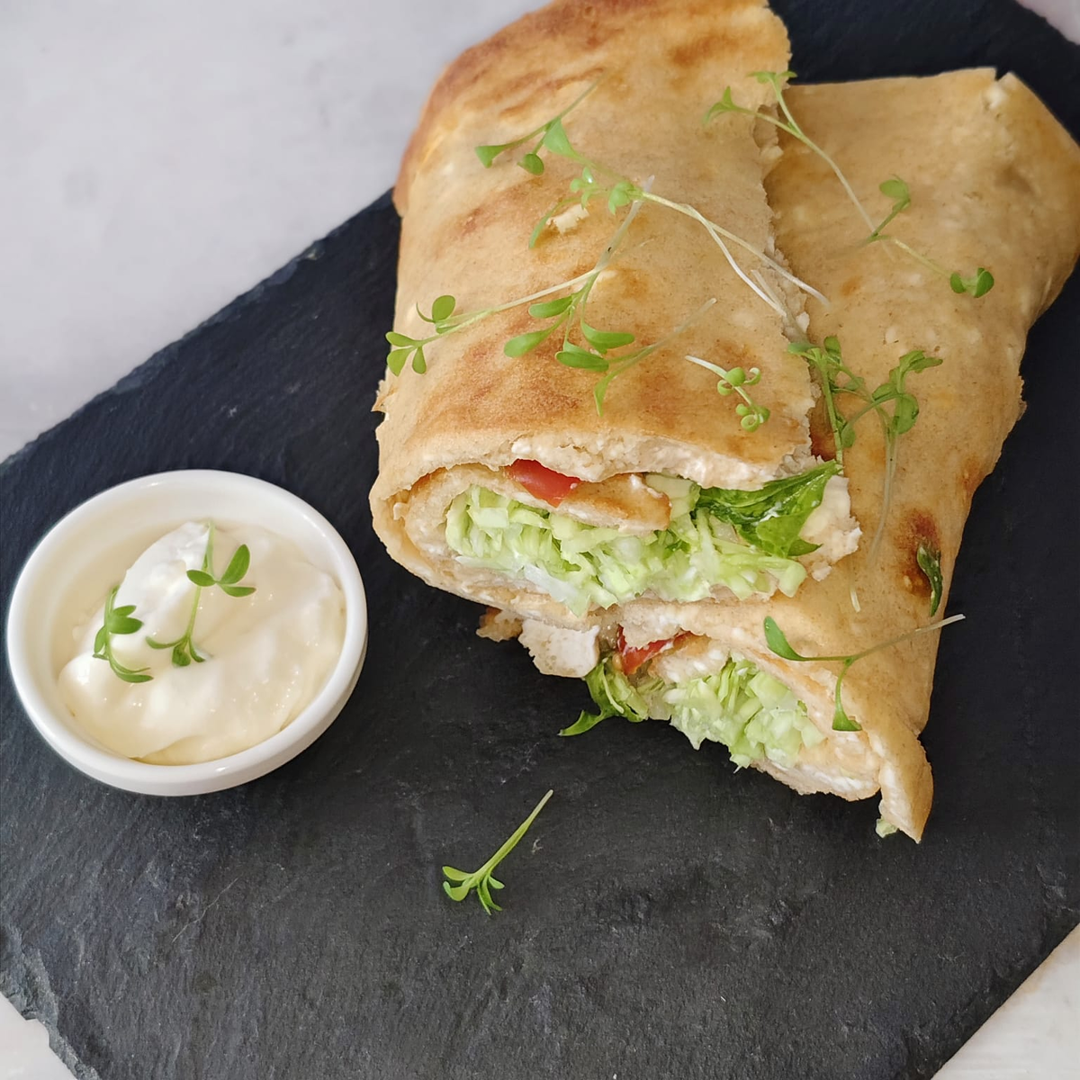 Всем привет! Творожную шаурму я собиралась приготовить, держала в голове. Попробовала творожные лепёшки в мультиварке - лепёшки получились, но недостаточно большими в диаметре и недостаточно эластичными для того, чтобы их сворачивать. Вчера купила свежий творог и сметану, хотела быстренько сырнички запечь, они нам не надоедают - и среди недели запекаю, и маме отвожу, и в домик. Но вспомнила о шаурме и на том же практически творожном тесте, её и приготовила. Продукты: Творог -- 250-270 грамм