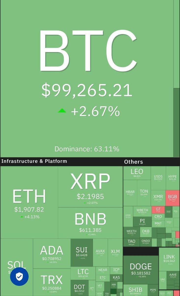🐂 Биткоин поджимает $100 000, эфир — $2 000.
