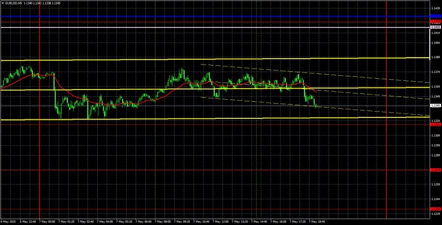 https://basechop.ru/wordpress/?p=41766 Анализ EUR/USD 5M. Валютная пара EUR/USD в течение среды продолжала торговаться все в том же флэте. Старший боковой канал можно ограничить уровнями 1,1274 и 1,1426. Младший боковой канал – уровнями 1,1274 и 1,1370. В течение дня в Евросоюзе и США был опубликован только один отчет, который был способен хоть немного повлиять на движение пары. Этот отчет – розничные продажи в ЕС. Он показал сокращение объемов в марте на 0,1% в месячном выражении, что, естественно, хуже прогнозов. Однако трейдеры никакого внимания не обратили на эту публикацию, как мы и предупреждали. Пара весь день торговалась с минимальной волатильностью. Что касается заседания ФРС и его результатов, то в этой статье мы их рассматривать не будем, так как считаем, что должно пройти некоторое время, чтобы рынок переварил всю полученную информацию. Очень часто бывает так, что после заседания ФРС цена летит в одну сторону, а уже через несколько часов – в обратную. Поэтому нужно…