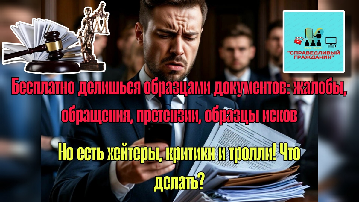 Я бесплатно раздаю образцы документов: жалобы, иски, законопроекты. Не беру ни копейки, не продаю курсы, не рекламирую услуги.