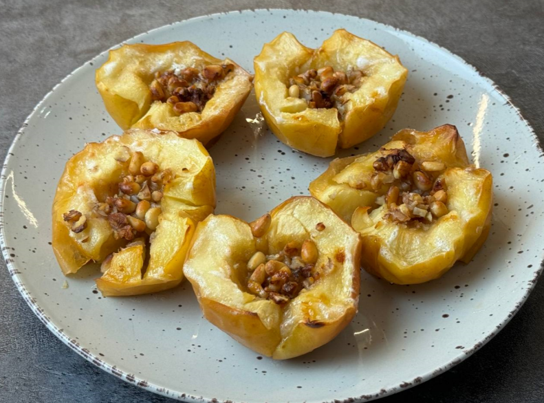 ✔️ Классическая начинка – орехи (грецкие, кедровые, фундук), изюм, корица. Можно добавить мед, сахар, сухофрукты, цукаты – все зависит от ваших предпочтений. Интересные варианты начинки: творожная масса, шоколадная стружка, ягодный джем.