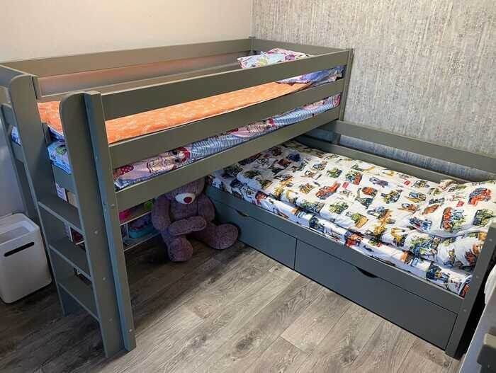 Промежуточный этап не фотографировал, не думал, что буду сюда публиковать. Как итог, 2 недели работы, 8 тысяч рублей и дети довольны. Реноватор для шлифовки и снятия фаски не считаю, ещё пригодится. Я не плотник, так что сильно не ругайте) P.S. Не думал, что будет столько комментариев, ни разу такого не было. На каждый ответить нереально, поэтому добавлю здесь. 1. Может быть я неправильно выразился, но, цели сэкономить у меня не было. 2. Да, я зарабатываю достаточно. И я могу купить такую кровать покалымив выходные. Для города в 30 тысяч населения я зарабатываю 100 тысяч на основной работе в сфере энергетики, работа на небольшой руководящей должности. И тысяч 40-50 в месяц на калымах по выходным. Не хотел писать про доход, но, судя по комментариям, тут одни экономисты и айтишники собрались. 3. Я не работал 2 недели с утра и до ночи. Я работал в свое удовольствие. Я работал с женой и детьми по возможности. Пока мы делали, мы общались, дети учились работать с инструментом. Всем это пошло на пользу. Не надо здесь считать калькуляцию заработной платы. 4. Также не надо считать работу над кроватью работой в прямом смысле. Я работаю всю свою сознательную взрослую жизнь на 2-3 работах. Я так привык и сидеть без дела я не могу. Для меня лучший отдых, как здесь заметил уважаемый комментатор - смена деятельности. Я увидел, мне понравилась идея, мне было интересно сделать это своими руками. И я сделал. Ни кто не упахивался с утра и до ночи. 5. Я указал стоимость кровати конкретно для меня. Во-сколько она обошлась конкретно мне. Столько грязи на эту тему вышло, что даже комментировать не хочется. Какой-то инструмент у меня был, какой-то был у родственников (тот же рейсмус). Что-то докупил. Т.к. я подрабатываю электромонтажником, я знаю, что инструмента много не бывает. Рупил реноватор, попробовал, понравился, буду пользоваться им дальше. 6. Я делал чертежи и сборку в бесплатной версии компаса. Научился немного пользоваться чуть раньше, а тут знания пригодились. Никаких дорогих ПО я не использовал. 7. Несколько человек попросили чертежи и сборку закинуть на яндекс диск. Специально для этих двух человек научился это делать и закинул. Вот ссылка: https://disk.yandex.ru/d/L4W3SHNzVbAnCg Если не будет работать, напишите. А то, может быть, и не научился. 8. Я сделал, потому что хотел. И опубликовал, потому что подумал, что кому-то может быть интересно. Но, большинству, наверное, нравится срачь, политика, котики и сиськи. Когда я пришёл на пикабу 8 лет назад, здесь ещё было "пятничное моё". Наверное, время ушло. Всем спасибо за внимание.