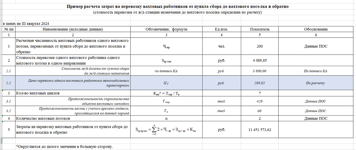 Пример расчета затрат на перевозку вахтовых работников от пункта сбора до вахтового поселка и обратно (стоимость перевозки от ж/д станции назначения до вахтового поселка определена по расчету) Пример расчета затрат на перевозку вахтовых работников от пункта сбора до вахтового поселка и обратно (стоимость перевозки от ж/д станции назначения до вахтового поселка определена по конъюнктурному анализу (КА)) Источник: ФГИС ЦС https://fgiscs.minstroyrf.ru/frsn/reference/letters/daadc98d-4b3a-4986-b878-871a84d8d4cf