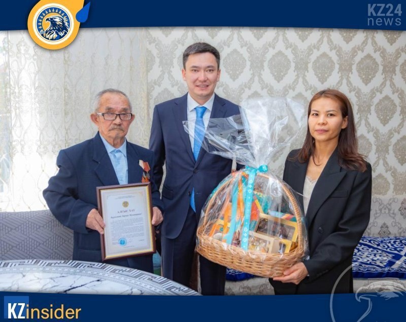 ❗️ Ветерана трудового фронта поздравили в Астане Представители Министерства торговли и интеграции Казахстана приехали в гости к Ларкану Муштареву, одному из немногих оставшихся ветеранов трудового фронта. Будучи подростком, он добровольно помогал красноармейцам, доставлял провиант и снаряжение на линию огня. Ветерана наградили множеством знаков отличия, среди которых медаль «Ветеран Труда». 💬 Часто ли вспоминаете рассказы своих старших родственников о тех временах?