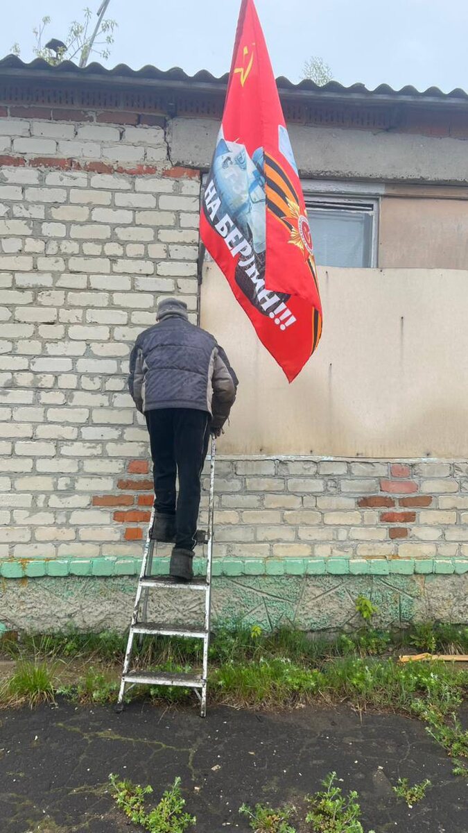 А тем временем начата подготовка ко Дню Победы. У клуба ведутся работы с праздничным обрамлением 🫡