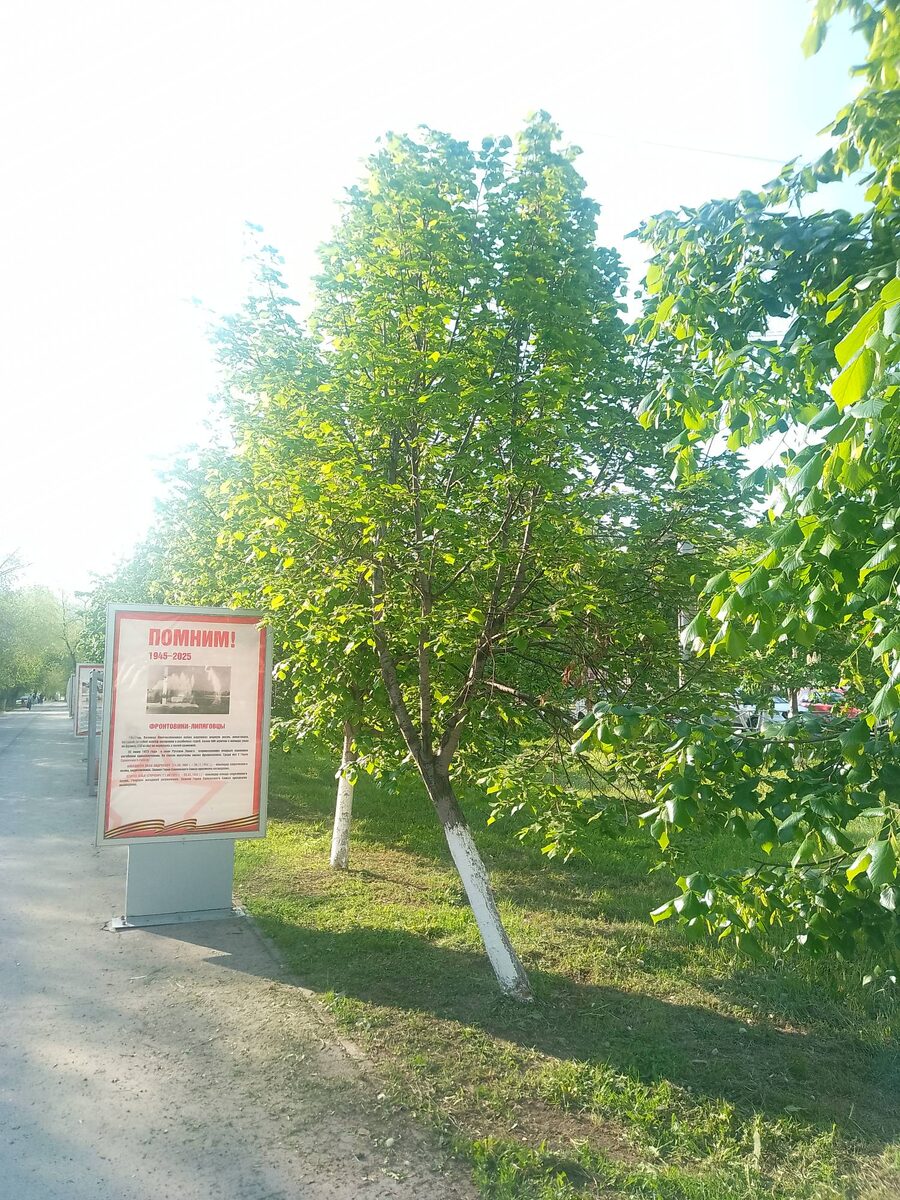 Вдоль аллеи установлены стенды с информацией о ВОВ, касательно жителей и предприятий Новокуйбышевска.