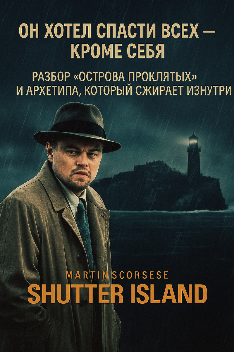 «Этот материал перекликается с циклом статей о скрытых архетипах. Подробнее — в разделе #Архетипы.» Если вы смотрели «Остров проклятых» и думаете, что поняли его — возможно, стоит посмотреть ещё раз. Потому что это не просто триллер, а история про архетип, который заставляет человека уничтожить себя — во имя спасения других. Сегодня мы разбираем этот фильм через призму архетипа спасателя — того, кто всегда должен помочь, всегда должен быть сильным. Даже если это его медленно разрушает. Тедди Дэниелс — не просто маршал, попавший на остров с загадочной психиатрической клиникой. Он — человек, который не может принять собственную слабость. Он потерял жену, потерял детей. Но вместо горя — он выбирает миссию. Он создаёт себе сюжет, в котором он — герой. И именно это делает его безумным. Не клиника, не врачи, не эксперименты. А собственное нежелание прожить боль. Он хочет быть тем, кто спасает. А не тем, кто однажды не спас. Если вы живёте, спасая других — будьте осторожны. Иногда за э
