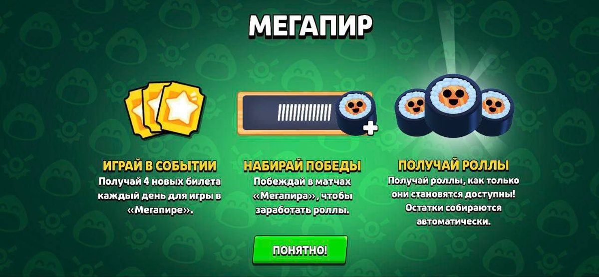 🔊 Мегапир уже в игре Ежедневно мы будем получать по 4 билета, наша задача побеждать в матчах данного клубного события. За 10 побед мы будем получать по 1 роллу. Всем удачи в прохождении! 🍀 Мир Supercell. Подписаться