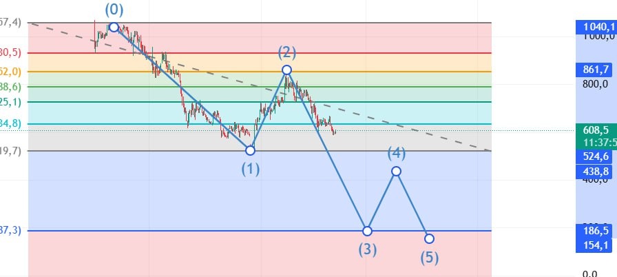 $LEAS Европлан находится в краткосрочно нисходящем тренде. 🕯В данный момент Актив построил две волны Эллиотта и начал строить третью волну, которая по фибо, вероятно дойдет до 193, для этого необходимо пробить сильные уровени сопротивления 525.3 и 359.5, что подтверждается графиком фибо. ✅ По фундаментальному анализу: Европлан является ключевым игроком на рынке лизинга. Однако, у актива есть высокая долговая нагрузка. Европлан зависит от рефинансирования долгов, что рискованно в условиях высоких ставок. Наличие резервов под убытки указывает на ухудшение качества портфеля. Лизинговые операции 90% это уязвимость к спаду спроса. В данный момент актив считаю нецелесообразным к приобретению (спекулятивный актив). Не ИИР #теханализ #трейдер #инвестиции # LEAS