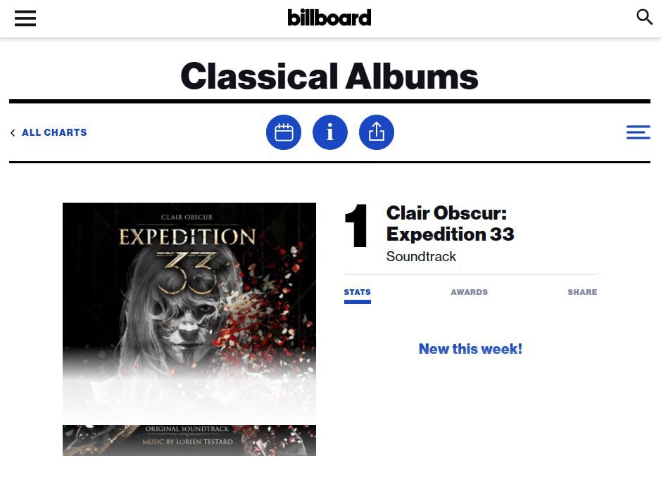 Саундтрек Clair Obscur: Expedition 33 рвёт чарты! Музыка из Clair Obscur: Expedition 33 ворвалась в Billboard: 🏆 1-е место в чарте классики 🏆 1-е место в чарте классических кроссоверов И это — от дебютанта в игровой индустрии! Композитор Лориен Тестар собрал 154 трека (8+ часов музыки), и всего за 2 недели саунд набрал 18+ млн прослушиваний. Его нашёл Гийом Брош — основатель Sandfall — просто на SoundCloud. И не прогадал. «Мы хотели, чтобы музыка жила отдельно от игры. Видимо, получилось!» — скромничает Лориен. Для игры от небольшой студии — это настоящий прорыв. Сам на повторе слушаю некоторые треки в Spotify.