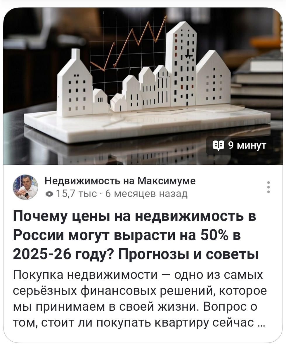 15,7 тысяч дочитываний за 6 месяцев и аж 127 лайков! Вот такую статью довелось прочитать (скрин ниже). 😂 Я даже комментировать её не буду. Вы б только почитали под ней мнения читателей. Весьма показательно. Очень жаль этого автора. Ссылку, уж простите, не оставлю, так как моё мнение диаметрально противоположное. Потому моя статья будет краткой, ибо комментаторами там сказано уже всё, что требовалось в полной мере. Да, и название канала говорящее - Недвижимость на Максимуме!!! Френдли атмосферно по отношению к клиентнам в свете и без того безумных цен на новостройки. Согласитесь? Но, целых 127 человек из 15,7 тысячи прочитавших всё же согласны с автором той статьи! 😳 Был такой аналитик на телеканале РБК - Степан Демура. Году так в 2010 давал прогноз в каждом интервью, что золото прям вот вот вырастет до 2000 долларов за тройскую унцию. Но, оно взяло и упало до 600 долларов. Степана турнули с РБК. Он был любимым гостем у ведущей телеканала Жанны Немцовой, дочки Бориса Немцова. Её