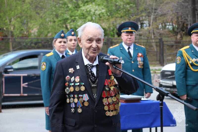 Общественно-патриотическую акцию «Знамя Победы», посвященную празднованию 80-летию Великой Победы, провели сотрудники МЧС Новосибирской области. В среду, 7 мая, участник Великой Отечественной войны Владимир Васильевич Сбоев, которому в этом году исполняется 100 лет, поднял Знамя Победы на флагшток возле 1-й пожарно-спасательной части в Новосибирске. Об этом сообщает пресс-служба регионального МЧС. «Поздравляю вас с замечательным праздником – праздником со слезами на глазах! Почему мы победили? Потому что верили в Победу, верили в наши идеалы. Жизнь продолжается, сменяются поколения, но наша главная задача – помнить историю, не забывать о подвиге нашего народа и никогда не допускать такого впредь», – сказал Владимир Васильевич. На мероприятии также присутствовал начальник Главного управления МЧС России по Новосибирской области генерал-лейтенант внутренней службы Виктор Орлов, участник специальной военной операции сержант внутренней службы Владислав Черкасов, а также сводный отряд, сформ