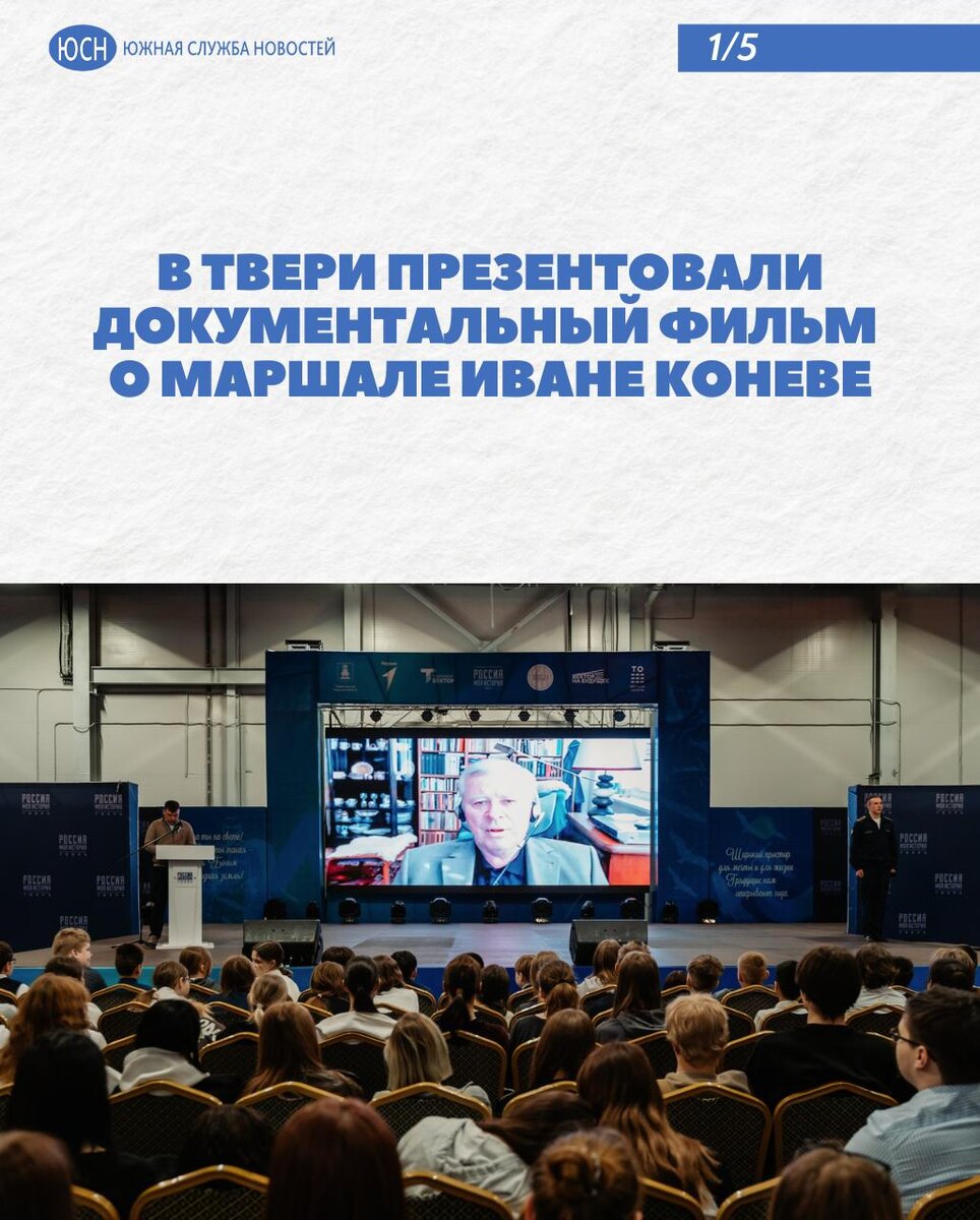 🔹 В Твери презентовали документальный фильм о маршале Иване Коневе Накануне 80-летия Победы в Твери презентовали документальный фильм «История одного супергероя: Иван Конев». Показ прошел в мультимедийном парке «Россия — моя история». Об этом пишет издание Тверские Ведомости. 🌐 Южная служба новостей