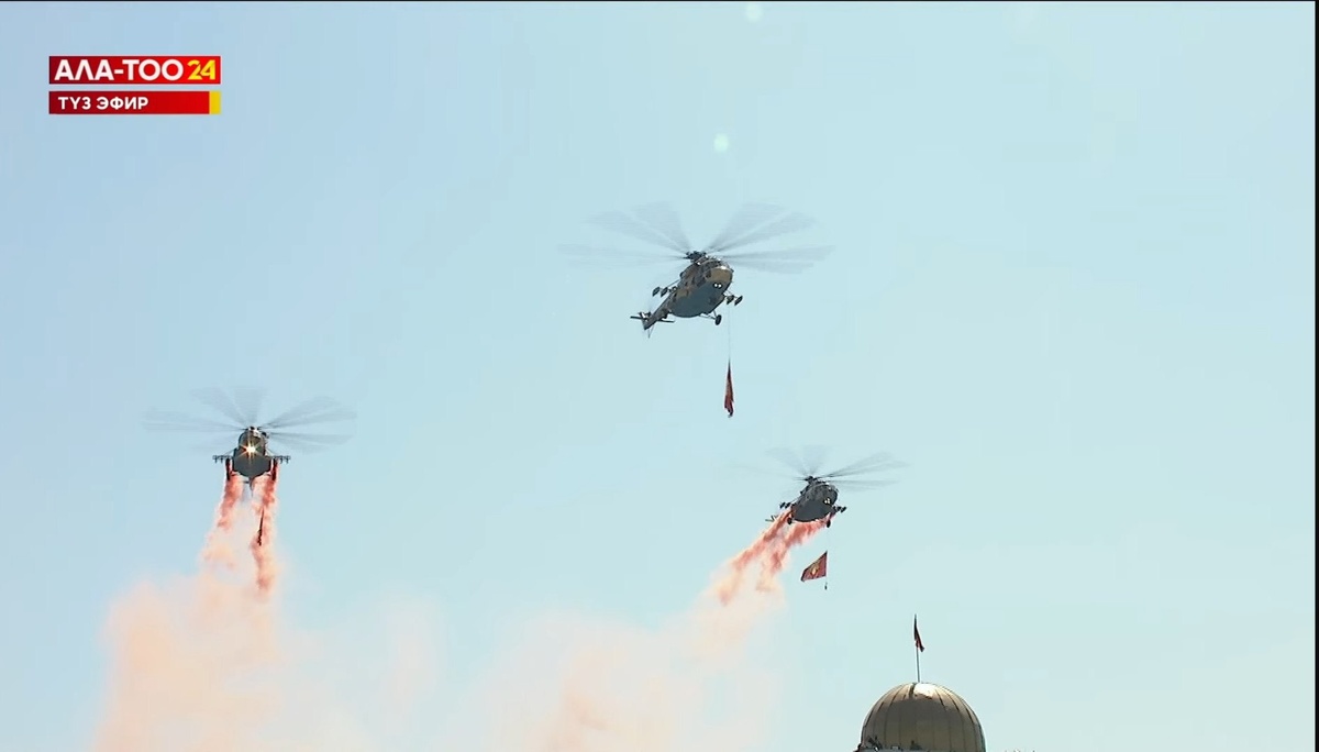 🇰🇬Qirg‘iziston poytaxtida parad bo‘lib o‘tdi. Uni mamlakat prezidenti Sadir Japarov kuzatdi Parad davomida T-72 tanklari, BMP-2 piyoda jangovar mashinalari, havo mudofaa tizimlari, Bayraktar TB-2 dronlari hamda harbiy vertolyotlar namoyish qilindi. @daryolive