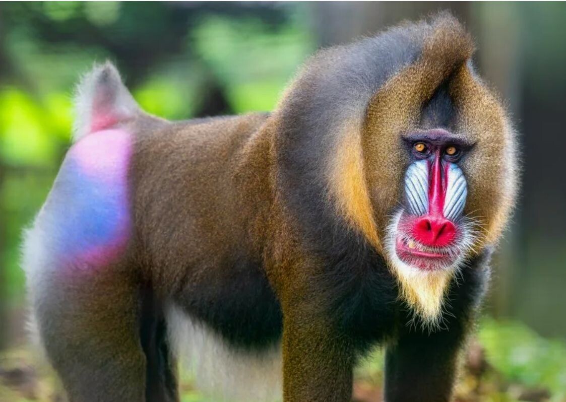 🦍 Мандрил — тот самый, с радужной попой. Да-да, не стесняемся — его лицо и зад ярче, чем у половины поп-звёзд на сцене. Эти цвета не просто так — у доминантных самцов они особенно яркие. Это как титул: "я тут главный, все смотрим на мой зад." Мандрилы — самые тяжёлые обезьяны после человекообразных. До 35 кг чистой мускулатуры и понтов. Живут группами по 100 и более особей, но могут объединяться в супергруппы до 1000 штук — вечеринка джунглей! А ещё они тихие, хитрые и сообразительные. Но если разозлить — лучше бежать и быстро. Мандрил — мода, мускулы и манифест "я не стесняюсь быть ярким".