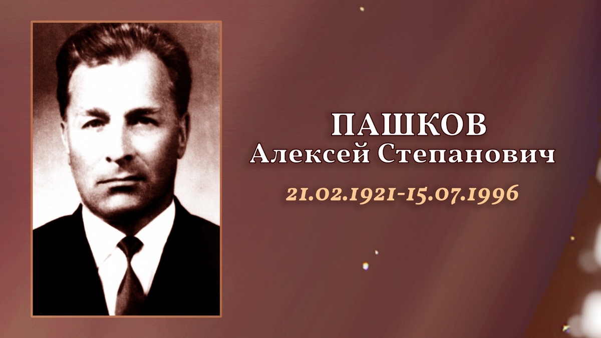 Пашков Алексей Степанович Выдающийся правовед, доктор юридических наук, профессор Ленинградского государственного университета, лауреат Государственной премии СССР Алексей Степанович Пашков родился 21 февраля 1921 года в Новгородской области в крестьянской семье. После окончания средней школы он приехал в Ленинград и поступил на физический факультет Ленинградского государственного университета. В 1939 году студент Пашков был призван в ряды Вооруженных сил. Алексей Степанович — участник Великой Отечественной войны с первого до последнего дня. Ему пришлось в полной мере испытать все то, что выпало на долю советского солдата: и отступление от самого Бреста, и окружение, и радость Победы. А.С. Пашков принимал непосредственное участие в боях в составе войск Центрального и 3-го Украинского фронтов, за что был удостоен правительственных наград. После демобилизации в 1946 году А.С. Пашков поступил в Ленинградский юридический институт, который окончил с отличием в 1950 году. Вся его последующая