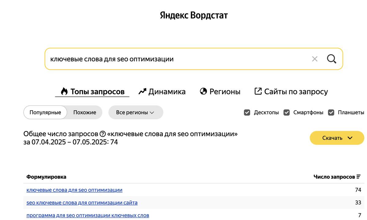 Как найти ключевые слова для SEO оптимизации с помощью WordStat
