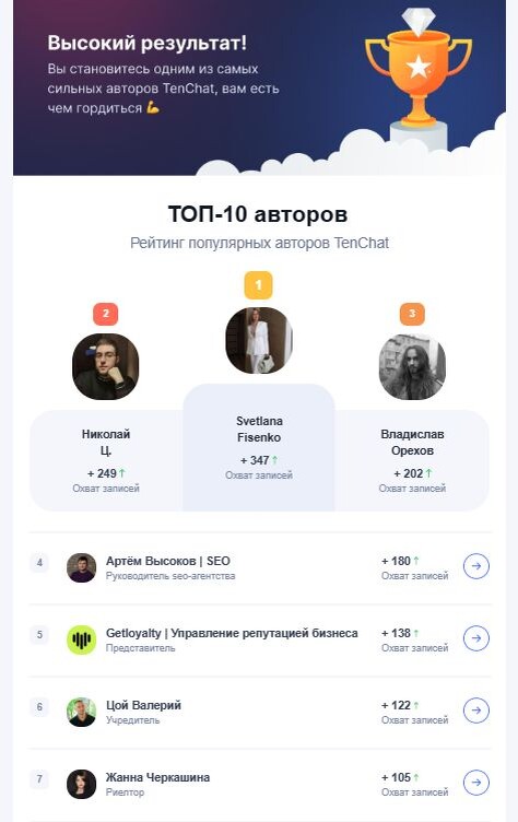 Я тут оказывается рву ТОПы Тенчата, даже несмотря на то что не пишу туда уже как недели три (да и до этого тупо копировал интересные посты из телеги 🤫) . Неделю назад был в ТОП-10 среди кого-то, сейчас уже в ТОП-1 из 5 из Руководителей SEO-агентств. И всё это с микроскопическими просмотрами 😁 Такие дела 🤷♂️ Короче, если что подписывайтесь 👉 на меня в Тенчате Вы, кстати, кроме телеги какие соцсети ведёте? ⌨️ Есть вопрос по SEO? Пиши в личку 👉 @vysokoff 🎯 Размещаем ссылки из статей и главных страниц с 1400+ PBN 👨💻Делаем дропы под ключ 📊Проводим комплексный аудит за 9500 рублей 📈 Продвигаем сайты в ТОП 🚀 Собираем экспресс-семантику за 3000 рублей 🖨 Генерим тысячи описаний товаров и отзывов 🤖 ИИ-плагины для генерации статей и картинок и комментариев 🤑 Реферальная программа - приведи клиент на SEO и получай 10% с его оборота ежемесячно 📞 Консультация по SEO @vysokoff