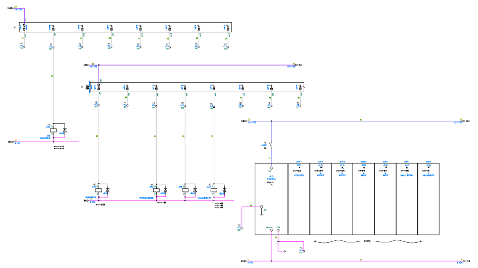 Проекты кроме схем подключения входов/выходов модулей ПЛК иногда содержат схему корзины с модулями, на которой показывается подключение питания и другие соединения. В этом случае графические образы модулей в корзине создаются как типовые горизонтальные или вертикальные родительские компоненты. Если к модулям в корзине не подключаются провода или кабели, в графический образ модуля можно не включать атрибуты точек подключения. На схемах подключения входов/выходов модули ПЛК обычно размещаются параметрическим способом или с использованием автономных точек. Одинаковые позиционные обозначения у составных частей компонента (модуль в корзине и тот же модуль на схеме подключений входов/выходов модуля ПЛК) объединяют их в единый компонент проекта. В отчете «Спецификация» AutoCAD Electrical отображается количество составных частей компонента, которым назначены каталожные данные, поэтому назначать каталожные данные нужно одной из частей компонента, в остальных частях поля каталожных данных должны