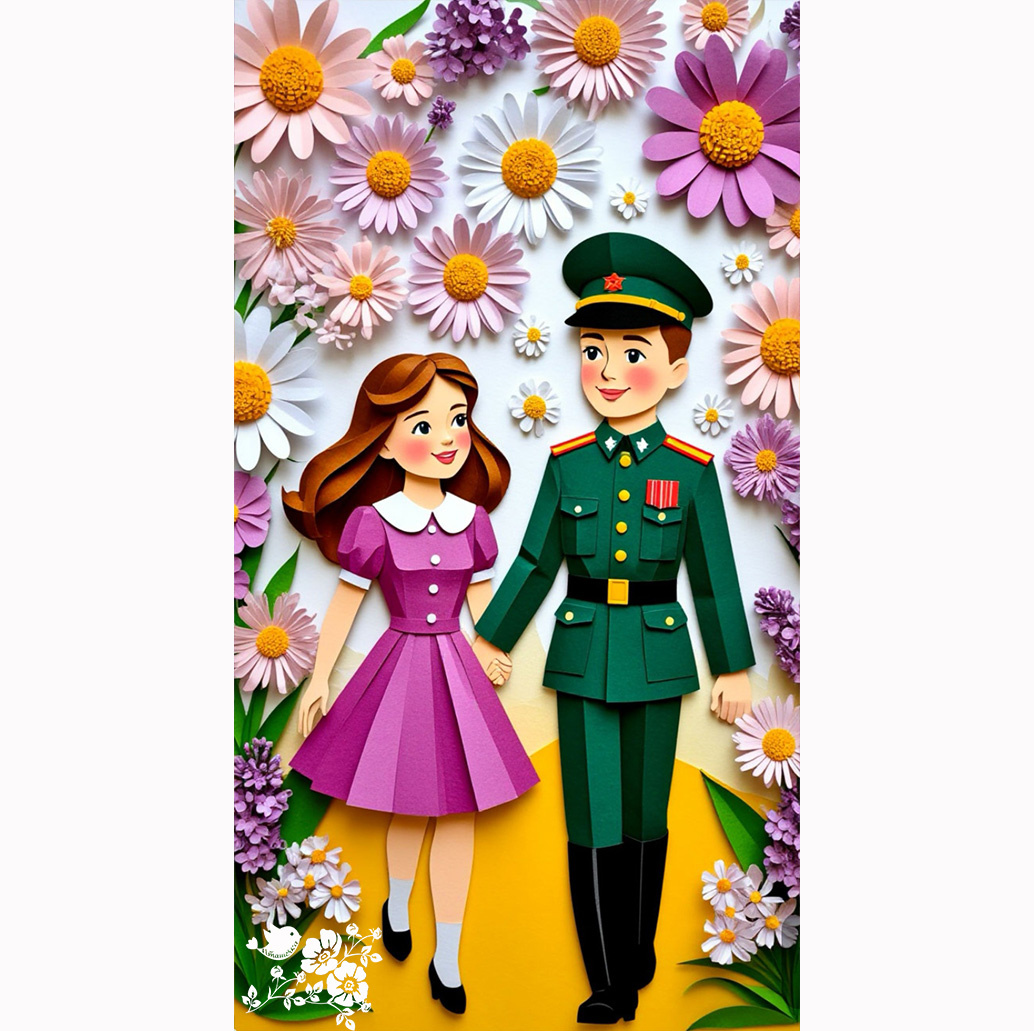 9 Мая — особенный день, символизирующий победу, мир и память о героях Великой Отечественной войны. В этот светлый праздник хочется создать что-то трогательное и радостное, что отражает дух времени и передает чувства благодарности и надежды. Объемное бумажное панно с изображением встречи парня и девушки - это не просто декоративный элемент, символ возрождения жизни, любви и мира после войны. Такая поделка станет ярким и душевным украшением интерьера, а процесс ее создания подарит вдохновение и даст возможность выразить свои чувства через творчество. Используя разные техники работы с бумагой - вырезание, сворачивание, скручивание и наклеивание - можно создавать выразительные объемные фигуры, которые как бы оживают на фоне композиции. В центре внимания - парень и девушка, символизирующие молодость, любовь и светлое будущее, которое стало возможным благодаря подвигу тех, кто сражался за мир. Для создания панно можно использовать разнородную бумагу: теплые и нежные тона для передачи атмосф