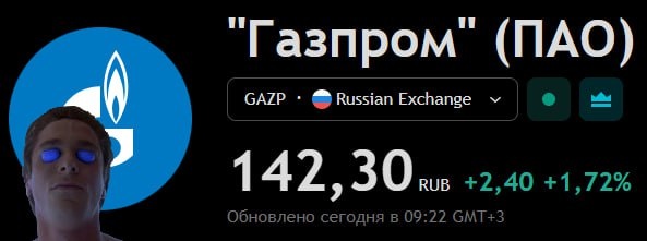 😎 Газпром делает почти +2% на утренних торгах на фоне ожидаемого прогресса в переговорах по «Силе Сибири - 2» с Китаем