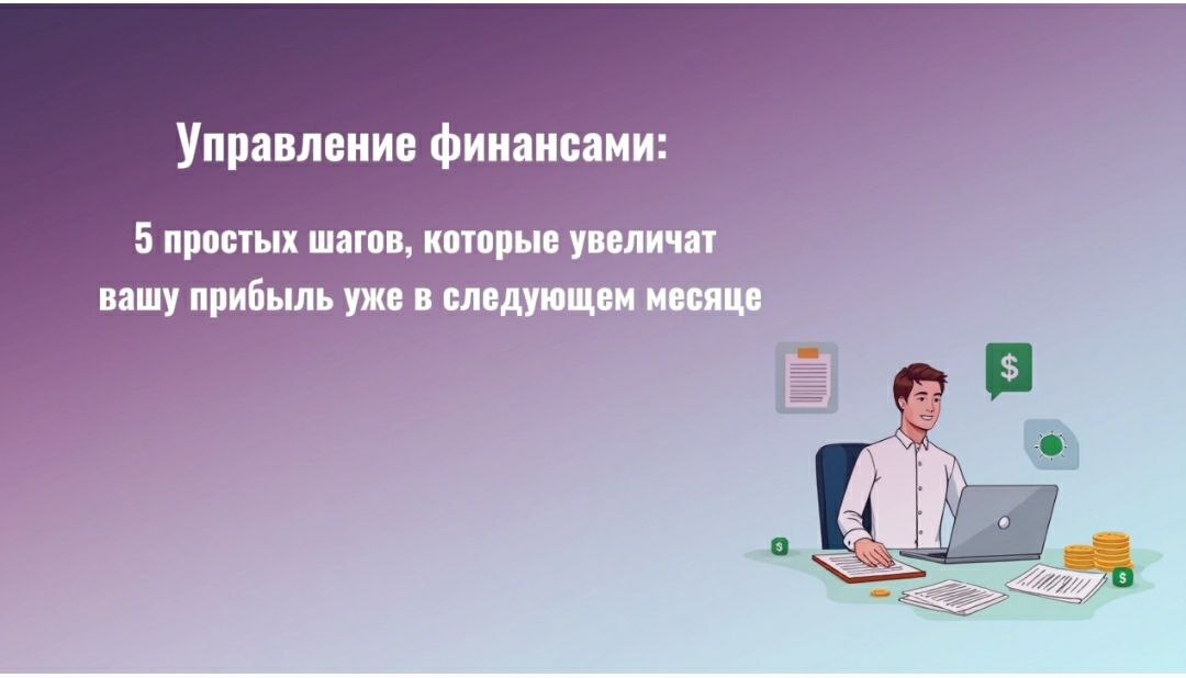 А знаете ли Вы… что “на низком старте” по статистике остается более 60% малых и средних предприятий, отмечая трудности с управлением финансами? Больше 80% компаний, которые выходят на рынок, закрываются в первый же год. Знакомо чувство, что бизнес все еще буксует, несмотря на все предпринятые усилия? Хватит “тушить локальные пожары” – пора строить систему! Всего 5 простых шагов позволяют увеличить прибыль уже через месяц. Интригует? В сторону сухую теорию, графики и формулы! Конкретный план действий, основанный на практическом опыте и реальных кейсах, помогает построить рабочий алгоритм управления финансами: ➡️ Шаг 1: Аудит - “рентген” вашего бизнеса Не стоит пытаться сразу и в подробностях охватить сразу всё! Начните с малого: проанализируйте доходы и расходы за последние 3 месяца. Выявите основные статьи затрат и оцените их эффективность. Где можно сократить расходы без ущерба для качества? Практический совет: Внедрите систему учета расходов, например, используйте онлайн-сервисы. Эт