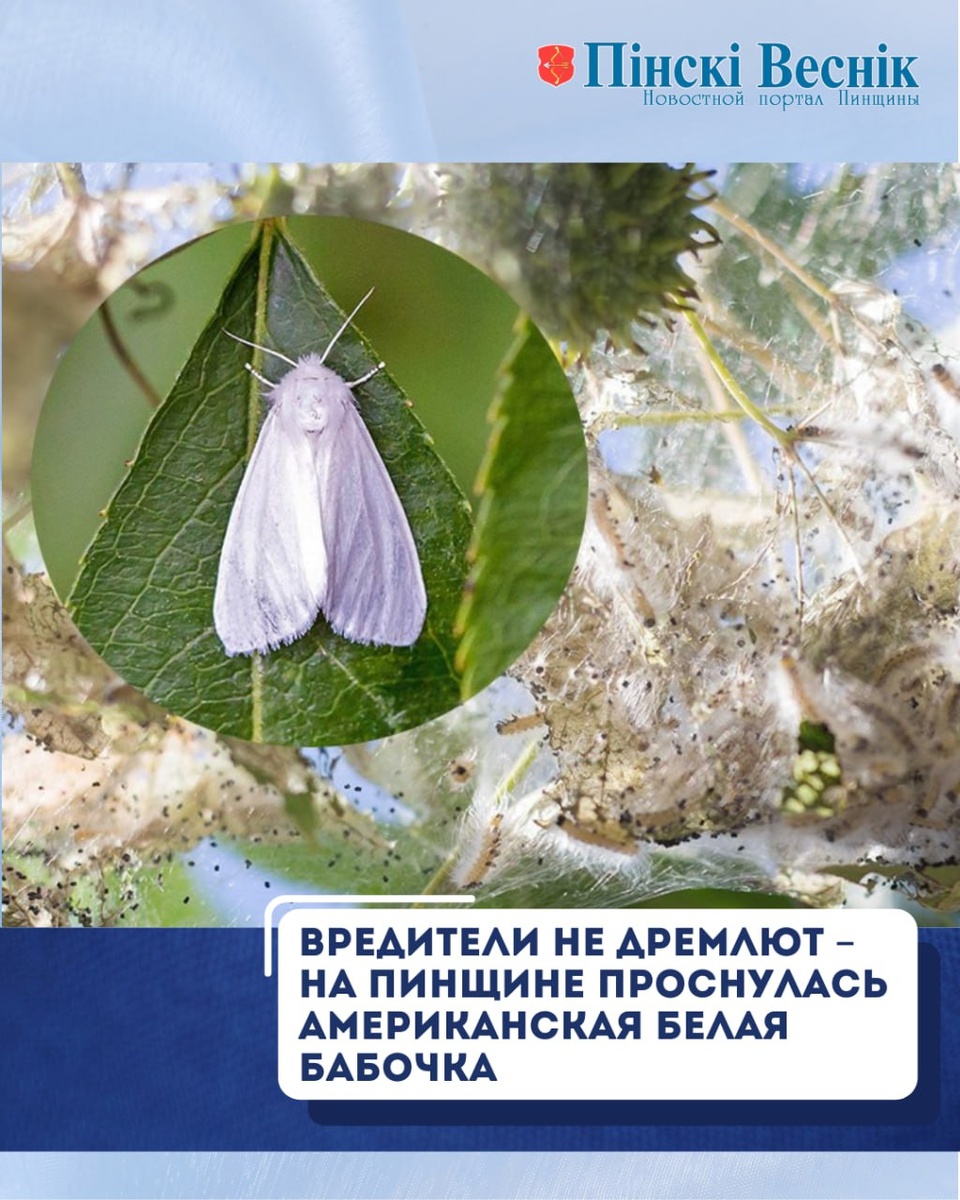 📌Весна в самом разгаре. Природа оживает. Активизируются насекомые, как полезные, так и те, которые наносят урон растительному миру. Пользователи соцсетей делятся информацией о том, что вновь замечен опасный вредитель – американская белая бабочка. Появилась ли она в Пинске, поинтересовались в районной государственной инспекции по семеноводству, карантину и защите растений. Ведущий агроном - государственный инспектор Вероника ЗУЙКЕВИЧ отмечает, что сегодня ведутся обследования территорий города и района. Выявляются очаги поражения белой бабочки. Карантин, введенный в Пинске в прошлом году, продолжается. Под особый контроль взяты такие населенные пункты, как Оснежицы, Плещицы, Лопатино, Парохонск, Жидче. ‼️В случаях обнаружения вредителей, схожих по внешним признакам с американской белой бабочкой, а также паутинных гнезд с колониями гусениц следует незамедлительно сообщать в Пинскую районную государственную инспекцию по семеноводству, карантину и защите растений по тел.: 8(0165) 61-42-2