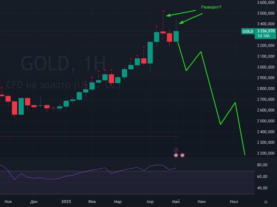 🥇 #Золото #GOLD #bogdanoffinvest 🟢В золоте на недельном тайм-фрейме рисуется вторая разворотная свечка. Если на этой неделе мы ее не испортим, то можно пробовать вставать в шорт. 🟢Большое падение в золоте может случиться только на больших страхах. Что-то может сильно напугать рынки, и тогда эти свечки пойдут отрабатываться.
