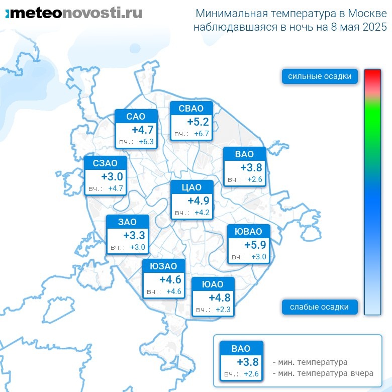 #за12часов #ночь Прошедшая ночь на 8 мая оказалась на 1.0°C холоднее предыдущей