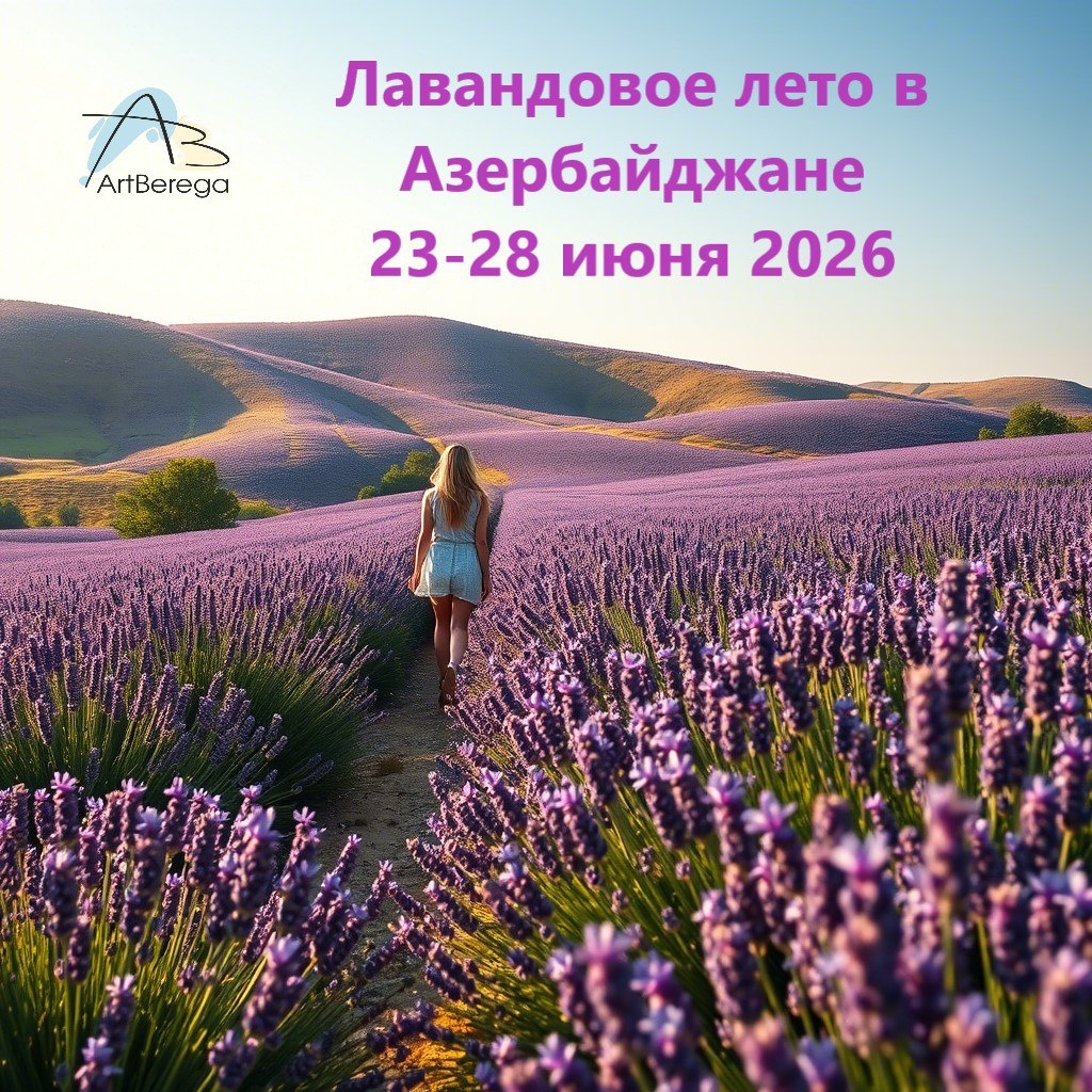 💜 Вы когда-нибудь видели, как растёт ваш любимый аромат? В Азербайджане с Артберегами вы сможете не только понюхать, но и попрыгать на лавандовых полях! 🌿 Друзья, приглашаем вас отправиться в волшебную поездку в Азербайджан , где вас ждут не только богатая культура и гостеприимство, но и потрясающие лавандовые поля , расцветающие яркими красками летом! 📅 Даты поездки: 23-28 июня 2026 📍 Место: Азербайджан 🎒 Формат: экотуризм / фототур / отдых на природе 🌿 Лавандовые поля Шамахинского района — фиолетовые просторы, которые расцветают летом и создают по-настоящему волшебную атмосферу. 📸 Сделаем невероятные фото на фоне полей, наполненных тонким ароматом лаванды. 🍵 Попробуем свежие травяные чаи и натуральные эфирные масла ручной работы. 🌄 Увидим закаты над Кавказскими горами и услышим пение птиц в утопающих в зелени долинах. 🌿 Баку — жемчужина Каспия, где сочетаются величественные шедевры Средневековья и современные архитектурные ансамбли. Это путешествие — не просто экскурсия