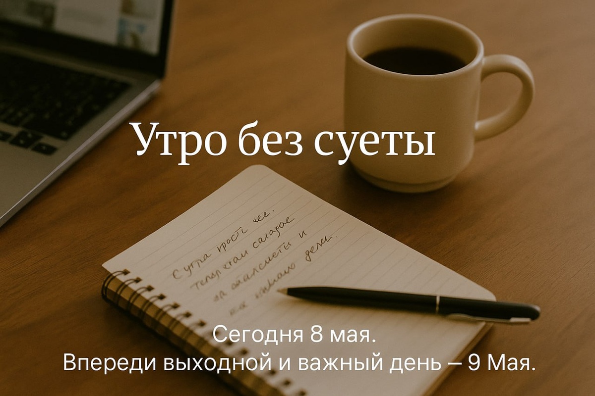 🕊 Утро без суеты Сегодня 8 мая. Впереди выходной и важный день — 9 Мая. Сейчас самое время немного притормозить, перевести дух и навести порядок — не только в делах, но и в мыслях. С утра сел, открыл старые заметки — и понял: сильнее всего я вырос не в цифрах, а в спокойствии. Там, где раньше была тревога — теперь системность. Там, где метался — теперь понимаю, зачем делаю то, что делаю. Наверное, это и есть взросление предпринимателя: уметь поставить на паузу, выбрать главное и не терять фокус. Спасибо тем, кто рядом. И тем, кто только начал путь — держитесь курса. Оно того стоит. ––– 📌 А у вас бывают такие моменты — когда просто хочется остановиться и подумать? Что помогает вам прийти в себя?
