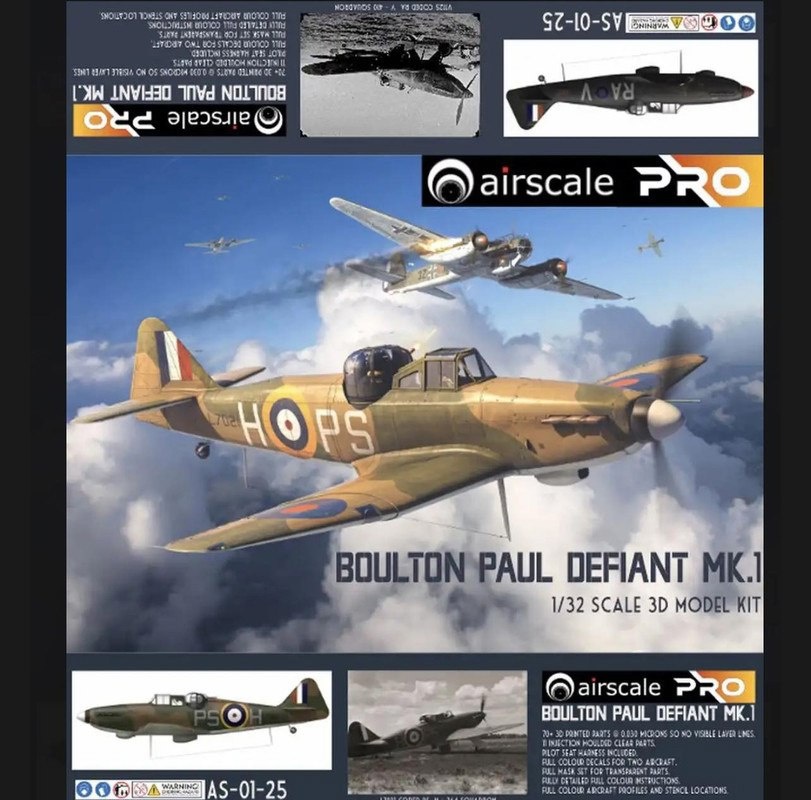Английская Airscale показала сборку своей выращенной на 3D-принтере модели Boulton Paul Defiant Mk.1 в масштабе 1/32 с примеркой полистироловых прозрачных деталей: Boulton Paul Defiant Mk.1 (каталожный номер AS-01-25)