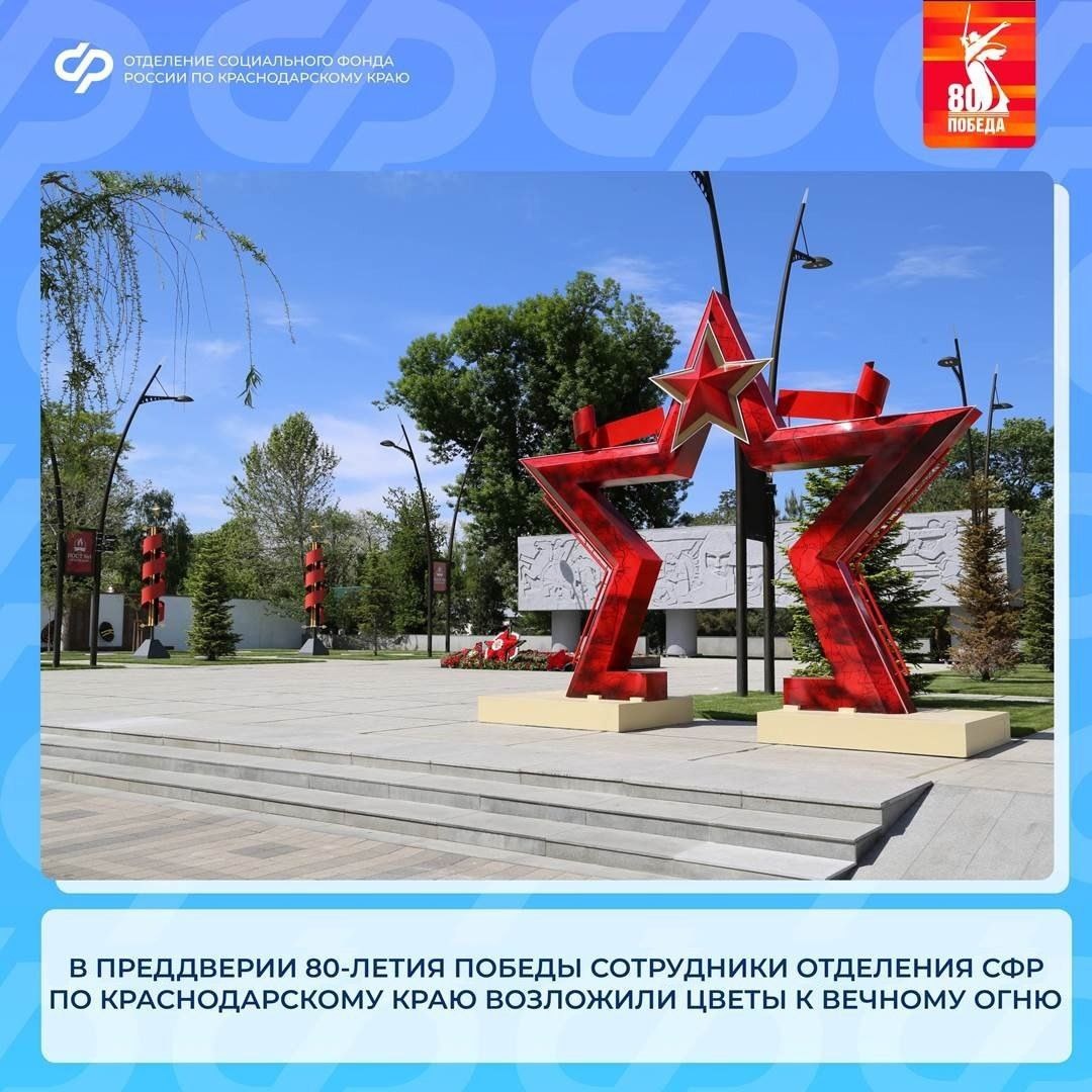 В преддверии 80-летия Победы сотрудники Отделения СФР по Краснодарскому краю возложили цветы к Вечному огню