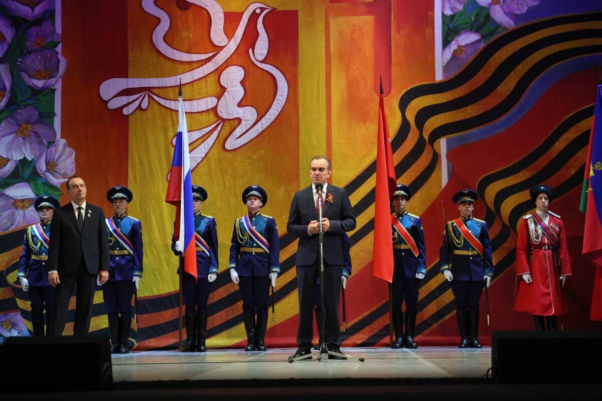 ⭐️ПРАЗДНИЧНЫЙ КОНЦЕРТ КО ДНЮ ПОБЕДЫ⭐️ На сцене Музыкального театра прошел торжественный концерт в преддверии Дня Победы. Губернатор Краснодарского края Вениамин Кондратьев поздравил ветеранов Великой Отечественной войны и героев спецоперации с 80-й годовщиной Победы в Великой Отечественной войне. Участие в мероприятии также приняли председатель ЗСК Юрий Бурлачко, митрополит Екатеринодарский и Кубанский Василий, вице-губернаторы, ветераны, участники СВО и др. Солисты и коллективы Краснодарской филармонии - Государственный концертный ансамбль танца и песни «Кубанская казачья вольница им. Н.В. Кубаря», Краснодарский государственный камерный хор, квартет «Адажио», заслуженные артисты Краснодарского края Павел Кравчук, Николай Колчевский, Евгений Панчёхин, Елена Быкова, а также Сергей Сало и др. приняли участие в праздничном концерте. А самый запоминающийся «Майский вальс» станцевала артистка Краснодарской филармонии вместе с ветераном Великой Отечественной войны Степаном Степановичем К