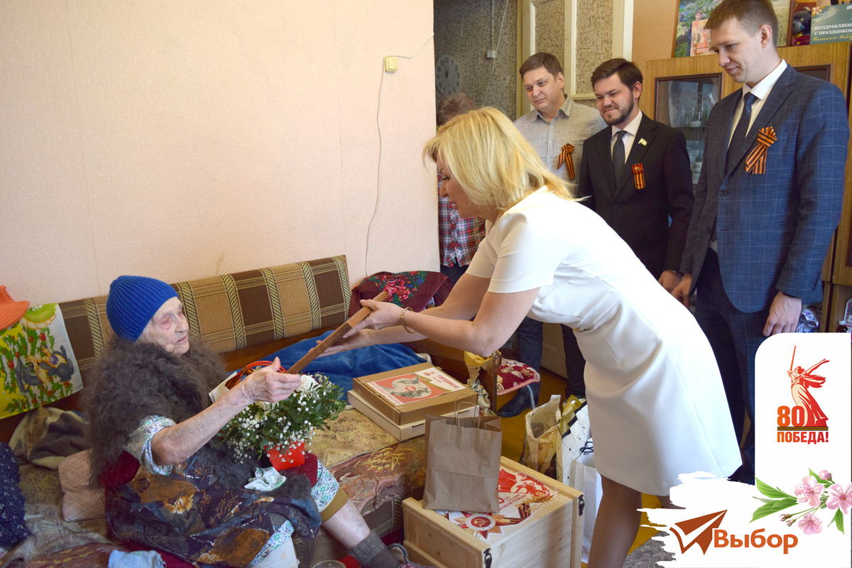 — Надежда Петровна, мы опять к вам с поздравлениями и подарками, — улыбается Виталий Сомов. — Спасибо за всё, что вы сделали для нас, нашего народа, нашей страны. И искренне надеюсь, что и в следующем году мы вместе встретим День Победы.
