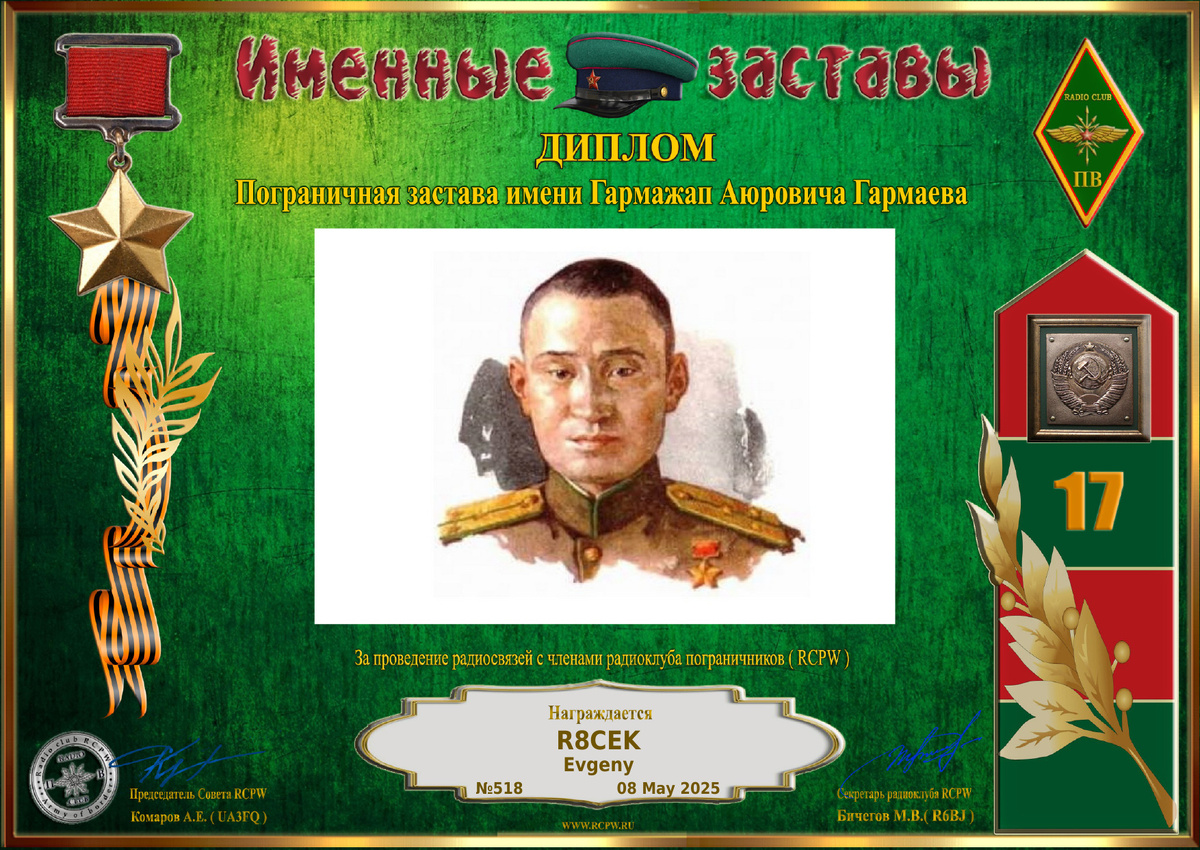 Краснознамённой 50-й кавалерийской бригады. В мае и июне 1938 г. свыше 400 бойцов бригады, в том числе Гармаева Г.А., передислоцировали в Ленинградский военный округ, где в дальнейшем они принимали участие в войне с Финляндией с ноября 1939 г. по март 1940 г. С первых дней войны Гармаев Г.А. находился на передовой, участвовал в