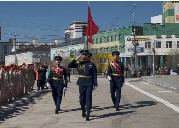 🚩 Эстафета «Знамя Победы» завершилась в Якутии Эстафета «Знамя Победы» 8 мая завершилась в столице республики, пройдя по всем районам Якутии. Знаменная группа приняла стяг и водрузила его на площади Победы. Старт пути знамени в декабре прошлого года в Мегино-Кангаласском районе, на родине первого из народа саха Героя Советского Союза Федора Попова, дал Глава Якутии Айсен Николаев. Подробнее по ссылке 🖥 Фото: ЯСИА 📸 @Якутия 24