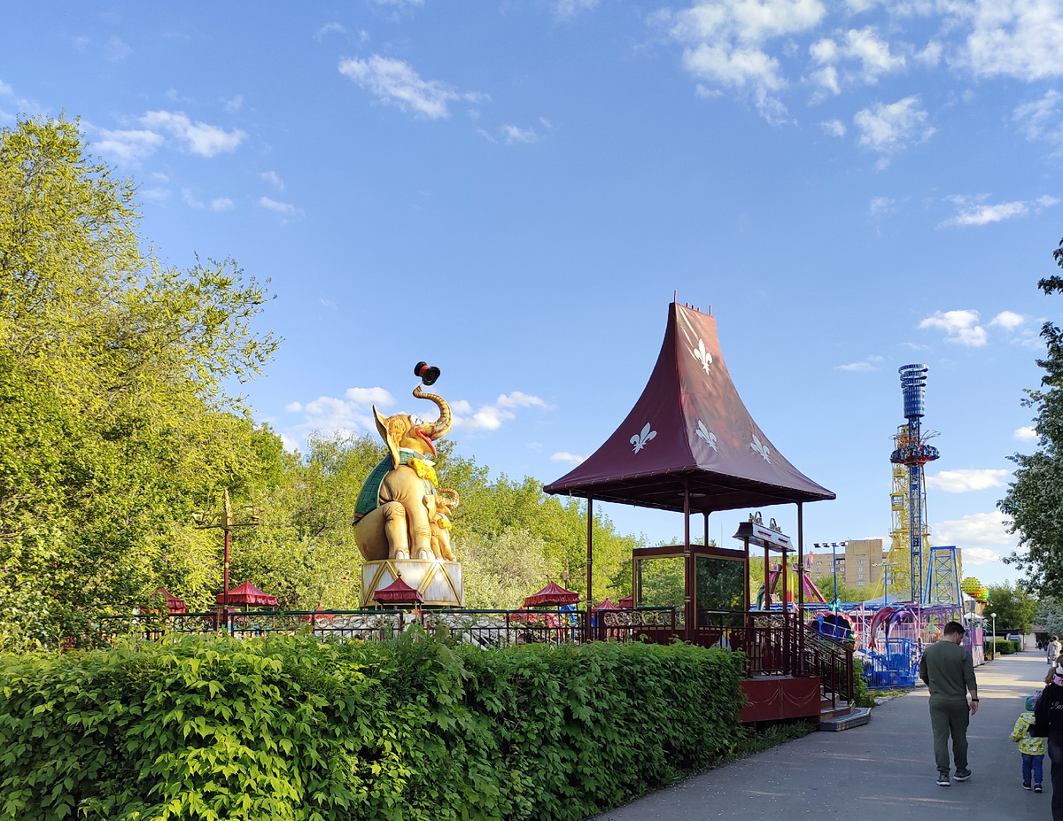 Заглянула в историю создания этого парка и удивилась. Оказывается, он начал строиться еще в семидесятых годах, а к 1980 году уже функционировал. Но я его в своем детстве не помню. Помню различные Луна-парки, которые приезжали из Польши и Чехословакии, а этот парк не помню совсем. Но что есть, то есть. Сама территория парка создавалась еще при СССР. В наше время ее только улучшили при помощи новых аттракционов. А все ландшафты были созданы ранее. Сами ландшафты парка тоже интересны. Там созданы искусственные водоемы и ручейки. Летом можно покататься на лодках. Ну про аквапарк я вам уже как-то рассказывала ранее. Почитайте старую статью, там много фото и есть фото водоемов и аквапарка. Побывали мы с ним в этом парке два раза. Дело в том, что из садика я его забирала около четырех часов дня. Поэтому нам надо было чем-то себя занять еще часов на пять как минимум. Парк находится довольно далеко от нашего дома и ехать надо на маршрутке. Пока до маршрутки дойдем, а там до парка идти от оста