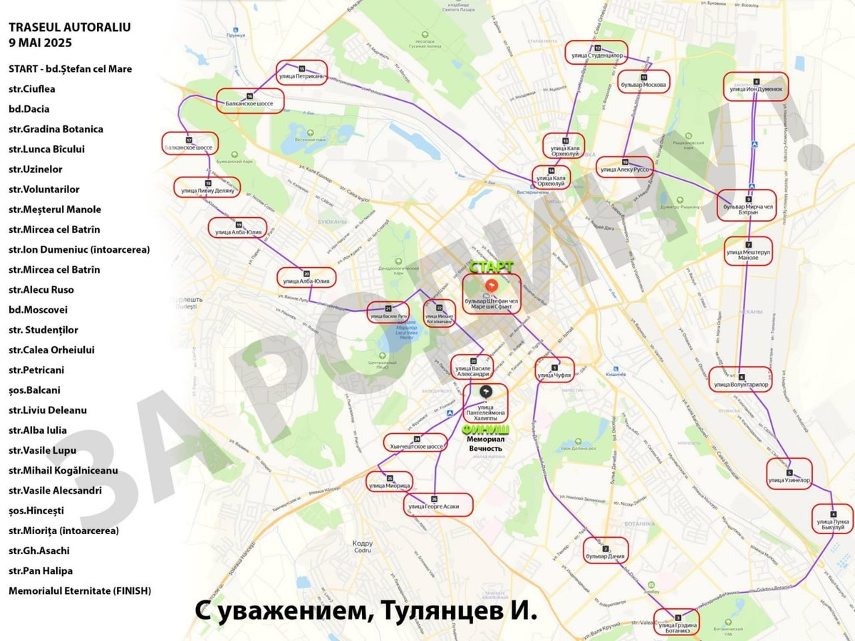В ответ на пост ⚡️🇲🇩Автопробег "Победа. Одна на всех" Организатор мероприятия, председатель общественного совета "За свободную Родину" Игорь Тулянцев опубликовал маршрут, по которому будет передвигаться колонна автомобилей. ☝️🔥Держим в курсе. @eNewsmd.online 👈 Подписывайтесь на наш канал
