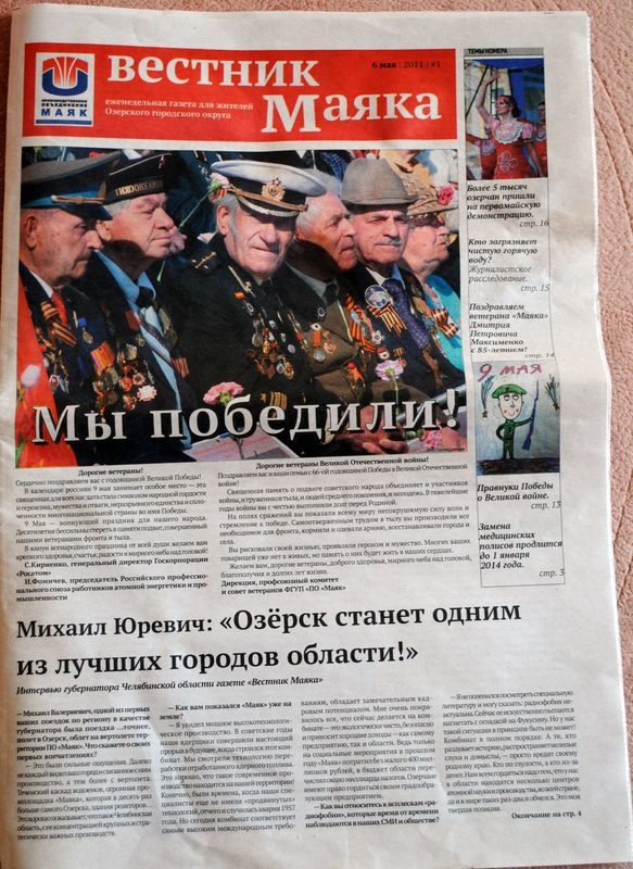 Май 2011 года. Вестник "Маяка" за 6 мая. Интервью губернатора. Чуть ли не единственное интервью губернатора области многотиражке ПО "Маяк". Михаил Юревич: "Озёрск станет одним из лучших городов области!" Не смог, не успел?