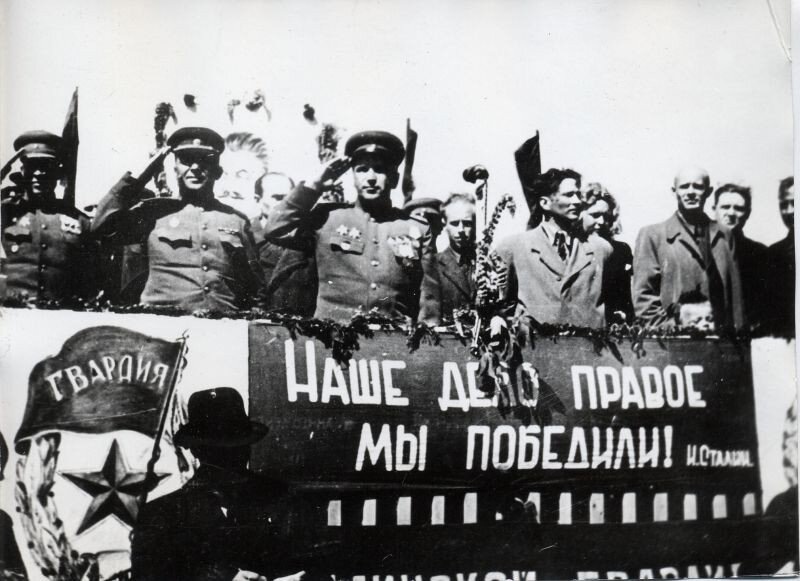 Эти фотографии почти все общеизвестны, все мы видели их не раз, но все-таки в честь праздника предлагаю еще раз на них взглянуть. На счастливые лица людей, празднующих окончание одной из самых страшных войн в истории человечества. Восстановление страны из военных развалин, подсчеты погибших, оплакивание тех, кто не вернулся и пропал без вести, все это - потом. А пока — Радость, такая, что даже спустя годы с этих черно-белых фотографий до нас доносится эта волна неудержимого ликования. Мария Тимофеевна Шальнева регулирует движение военной техники недалеко от рейхстага. 02.05.1945 год. Офицеры пьют за Победу. Лидия Русланова исполняет знаменитую "Катюшу" на фоне разрушенного рейхстага. Советские солдаты на улице Берлина Красное советское знамя на квадриге Бранденбургских ворот Солдаты, штурмовавшие рейхстаг Эшелон, на котором солдаты возвращались в Москву Радость и боль Победы: Герой Советского Союза А.В.Гладков с женой после парада Победы. Возвращение с фронта (дважды герой Советского с