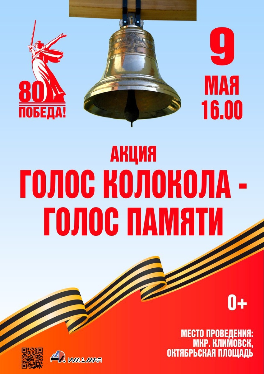 ✨ ГОЛОС КОЛОКОЛА — ГОЛОС ПАМЯТИ 🕯️Акция состоится 9 мая в 16.00 мкр-н Климовск, на Октябрьской площади. 🌟Ждем вашего участия! Пусть голоса наших колокольчиков звучат громко и гордо, подобно звону священных колоколов, пробуждая вечную память поколений! 📆 09.05.2025 🕒 16:00 💰 Вход свободный❗️ #webПодольск ✅ Мероприятия Подольск https://dzen.ru/id/66ed500f7b5671493eca3fd6 http://vk.com/podolsk_events http://dzen.ru/podolsk_events
