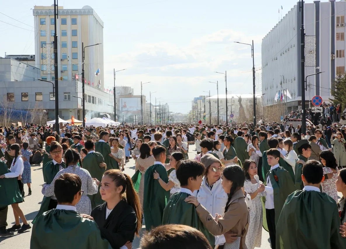 ⭐️ Более пяти тысяч пар закружились в «Вальсе Победы» в Якутске Свыше одиннадцати тысяч человек разных возрастов и поколений или более 5,5 тысячи пар приняли участие в патриотической акции «Вальс Победы» в Якутске 8 мая. Все они закружились в «Вальсе Победы» под известные песни — «Майский вальс», «Синий платочек», «Ах, эти тучи в голубом», «В лесу прифронтовом», «Прощай скалистые горы», «Севастопольский вальс». К тому же, все участники выступили в костюмах времен Великой Отечественной войны. Подробнее по ссылке 🖥 Фото: Саргын Скрбяин / ЯСИА 📸 @Якутия 24